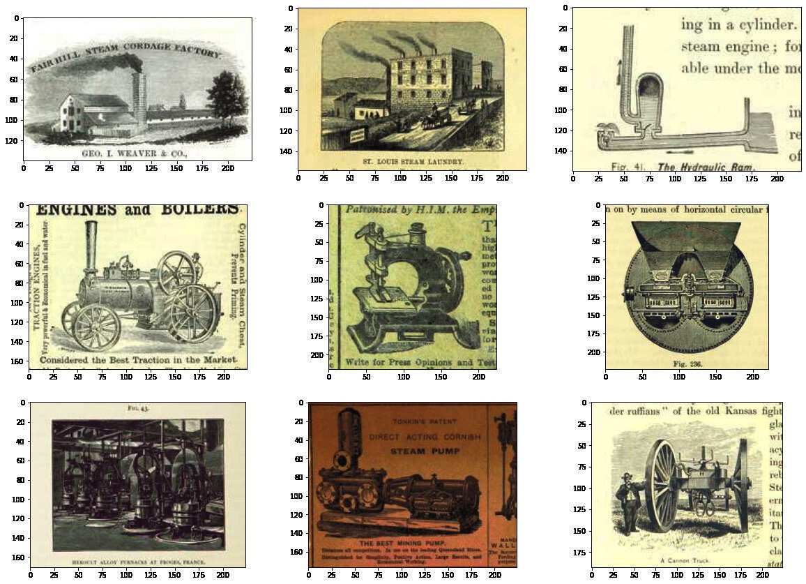 We now have everything we need to create a simple image search. We can use the same model we used to encode our images to encode some input text. This will act as the prompt we try and find close examples for. Let's start with 'a steam engine'.